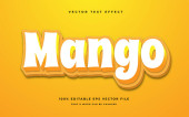 Sok mango 3d edytowalny efekt tekstowy w kolorze żółtym, nadaje się do tropikalnej koncepcji owoców.