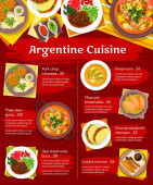 Zdjęcie "Kuchnia argentyńska obejmuje menu. Gulasz mięsny Guiso, cielęcina trzcina Osso Buco i Cookie churros, kotlet wieprzowy Milanese, Chorizo kanapka Choripan i zupa Locro, ciasto mięsne Empanadas" może być wykorzystywane do celów osobistych i komercyjnych zgodnie z warunkami zakupionej licencji Royalty-free. Obraz jest dostępny do pobrania w jakości wysokiej rozdzielczości do 5760x3840.