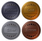 Zdjęcie "A set of 4 - 3D rendered illustrations of golden metallic seals with text "WINNER" and "INNOVATION" as well as 5 stars, in different coloured metallic texture finish, isolated on a white background." może być wykorzystywane do celów osobistych i komercyjnych zgodnie z warunkami zakupionej licencji Royalty-free. Obraz jest dostępny do pobrania w jakości wysokiej rozdzielczości do 5760x3840.