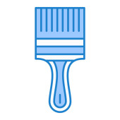 ikona pędzla do tworzenia stron internetowych, mobilnych i infografik. wektor biały cienka linia piktogram izolowany na niebieskim tle