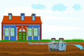 Zdjęcie "Mobilny system septyczny i system odwadniający. Schemat podziemnego systemu septycznego. Typowy szambo domowe. Zewnętrzna sieć prywatnych oczyszczalni ścieków domowych. Ilustracja wektora" może być wykorzystywane do celów osobistych i komercyjnych zgodnie z warunkami zakupionej licencji Royalty-free. Obraz jest dostępny do pobrania w jakości wysokiej rozdzielczości do 5760x3840.