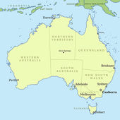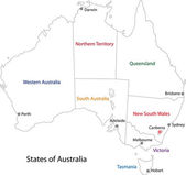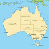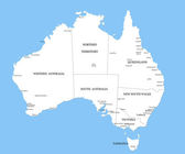 Mapa wektorowa Australii z regionami i podziałami administracyjnymi oraz sąsiednimi krajami i terytoriami. Warstwy edytowalne i wyraźnie oznakowane.