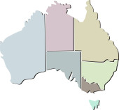 Wektor zilustrował pustą mapę Australii z regionami i podziałami administracyjnymi oraz sąsiednimi krajami i terytoriami. Warstwy edytowalne i wyraźnie oznakowane.