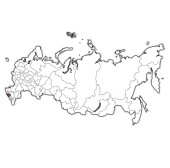 Mapa wektorowa Rosji z regionami lub okręgami federalnymi i podziałami administracyjnymi. Warstwy edytowalne i wyraźnie oznakowane.