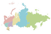 Mapa wektorowa Rosji z regionami lub okręgami federalnymi i podziałami administracyjnymi. Warstwy edytowalne i wyraźnie oznakowane.