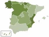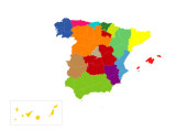 Wektorowa ślepa mapa Hiszpanii z regionami i terytoriami oraz podziałami administracyjnymi. Warstwy edytowalne i wyraźnie oznakowane.