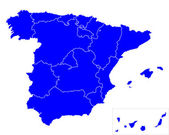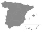 Wektorowa ślepa mapa Hiszpanii z regionami i terytoriami oraz podziałami administracyjnymi. Warstwy edytowalne i wyraźnie oznakowane.