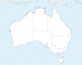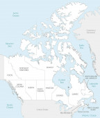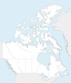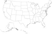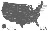 Wektorowa ślepa mapa USA z państwami i podziałami administracyjnymi oraz krajami sąsiednimi. Warstwy edytowalne i wyraźnie oznakowane.