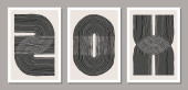 Modny zestaw abstrakcyjnych twórczych minimalnych artystycznych kompozycji szkicowanych ręcznie idealny do dekoracji ścian, jak pocztówka lub projekt broszury, ilustracja wektorowa