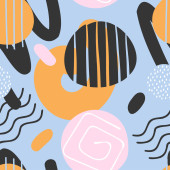 Zdjęcie "Modny bezszwowy wzór z teksturowanymi abstrakcyjnymi kształtami i bazgrołami, płaska ilustracja wektora na białym tle. Elementy geometryczne, koła, kwiaty, linie i korona. Współczesny bezszwowy wzór." może być wykorzystywane do celów osobistych i komercyjnych zgodnie z warunkami zakupionej licencji Royalty-free. Obraz jest dostępny do pobrania w jakości wysokiej rozdzielczości do 5760x3840.