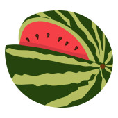 Ilustracja wektorowa okrągłego kawałka arbuza. Wektor arbuz płaski