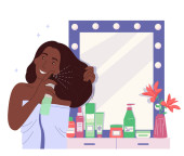 Produkt do pielęgnacji włosów izolowane ilustracje wektor kreskówki. Atrakcyjna dziewczyna stosując maskę olejną do włosów, ludzie styl życia, zabiegi kosmetyczne, leczenie domu, kobiety codzienne rytuały wektor kreskówki.