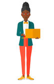 Przybył rozkaz odosobnionych ilustracji wektora kreskówki. Happy girl unboxing jej ubrania i akcesoria porządku, ludzie styl życia, zakupy online dostawy, konsumpcjonizm pomysł wektor kreskówki.