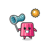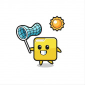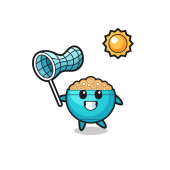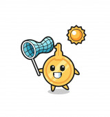 kolczasty kula maskotka ilustracja jest złapać motyl, ładny projekt