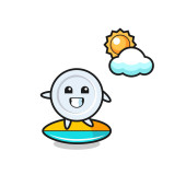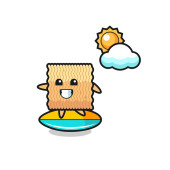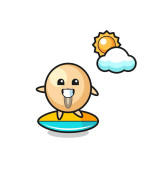Ilustracja piły z kreskówki zrobić surfing na plaży, ładny design