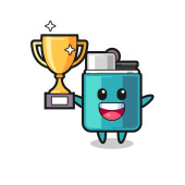 Kreskówka Ilustracja gumy do żucia jest szczęśliwy trzymając złote trofeum, ładny design