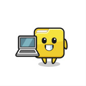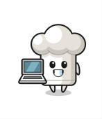 Maskotka Ilustracja bańki mowy z laptopem, ładny design