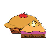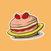 Szkic o naleśnikach truskawkowych. technika narysowana ręcznie. wykończenie w pełnym kolorze