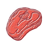 skecz o czerwonym mięsie. technika narysowana ręcznie. ilustracja logo