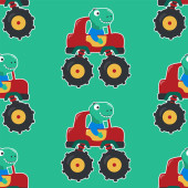 Płynny wektor wzorca cute monster trucka. Kreatywne wektorowe dziecięce tło dla tkanin tekstylnych, tła dziecięcego, odzieży dziecięcej, plakatu, papieru do pakowania i innych dekoracji.