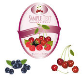trzy żółte etykiety z różnego rodzaju owoców. wektor.