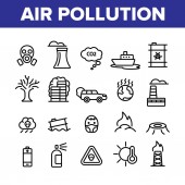 Przyczyny zanieczyszczenia powietrza i zanieczyszczenie atmosfery zarys schemat zestaw. Zbieranie z brudnych elementów smog przyczyniających się i toksycznych emisji CO2 wektor ilustracji. Etykietowane kwestie środowiskowe.
