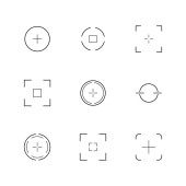 Zdjęcie "Ikony ostrości kamery, ramki autofokusa lub ekran wektorowy wizjera wideo i zdjęcia. Cyfrowy obiektyw obiektywu lub wizor z celownikami z linii autofokusa z zoomem i rejestrem kamer" może być wykorzystywane do celów osobistych i komercyjnych zgodnie z warunkami zakupionej licencji Royalty-free. Obraz jest dostępny do pobrania w jakości wysokiej rozdzielczości do 5760x3840.