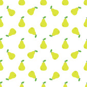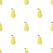 Gruszka bez szwu wzór. Ikona gruszki w stylu sztuki. Symbol owocowej ikony. Zarys gruszki w żółtym kolorze. Nowoczesny design do nadruku na tkaninie, papierze opakowaniowym, tapecie, opakowaniu. Ilustracja wektora