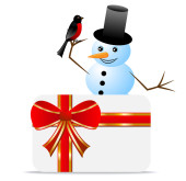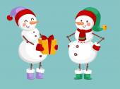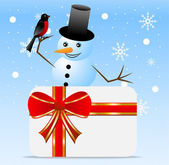 Wesołych Świąt koza z darem, człowiek śniegu i Gil