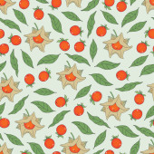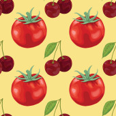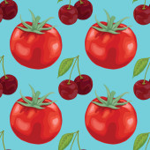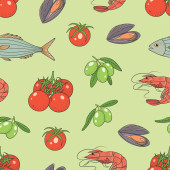 Wektorowy graficzny bezszwowy wzór z czerwonymi pomidorami i zielonymi oliwkami na białym tle