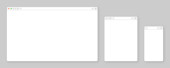 Zdjęcie "Puste okno przeglądarki internetowej z paskiem narzędzi i polem wyszukiwania. Nowoczesna strona internetowa, strona internetowa w płaskim stylu. Makieta przeglądarki dla komputera, tabletu i smartfona. Światło i ciemność. Ilustracja wektora." może być wykorzystywane do celów osobistych i komercyjnych zgodnie z warunkami zakupionej licencji Royalty-free. Obraz jest dostępny do pobrania w jakości wysokiej rozdzielczości do 5760x3840.