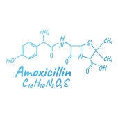 Struktura chemiczna amoksycyliny. Amoksycylina jest antybiotykiem stosowanym w leczeniu wielu zakażeń bakteryjnych. Obejmują one paciorkowca, zapalenie płuc, zakażenia skóry, i zakażenia dróg moczowych.