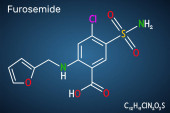 Struktura chemiczna furosemidu. Jest to pętla leki moczopędne stosowane w leczeniu nagromadzenia płynu z powodu niewydolności serca, blizny wątroby, lub choroby nerek.