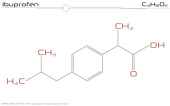 Struktura chemiczna ibuprofenu. Ibuprofen jest lekiem z niesteroidowych leków przeciwzapalnych klasy, który jest stosowany w leczeniu bólu, gorączki i zapalenia.
