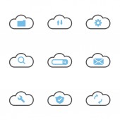 Cloud computing icon set isolated on white background. Cloud computing, information and database vector icons for web, mobile apps and ui design. Networking business design concept