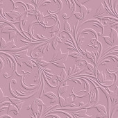 3d teksturowane wytłaczanie Paisley bezszwowy wzór. Wytłoczone różowe tło kwiatowe. Powierzchnia powtarza folklorystyczne tło. Paisley Emboss kwiaty linii ozdoba. Relief grunge tekstury z efektem tłoczenia.