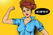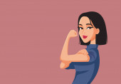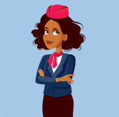Silna stewardessa pokazuje jej giętkie ramię wektor ilustracji kreskówki