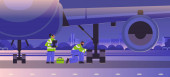 aviation marshallers supervisors in uniform near aircraft air traffic controllers airline workers in signal vests professional airport staff concept portrait horizontal vector illustration