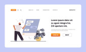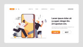african american man holding huge smarphone smartphone social media network online communication concept horizontal full length copy space vector illustration