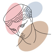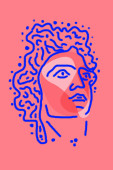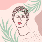 Kolaż z grecką boginią Atrodytą i kształtami geometrycznymi na białym tle.