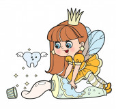 Cute trochę długowłosy bajki dziewczyna z magiczną różdżką odmiany kolorów dla kolorowanki strony izolowane na białym tle