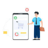 Płaska ilustracja projektu mobilnej aplikacji zakupowej