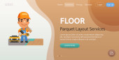 Wall Repair Services szablon strony internetowej. Ilustracja naprawy ścian o charakterze kreskówkowym.