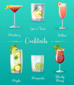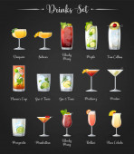 Różne koktajle w okularach zestaw ilustracja kreskówka
