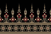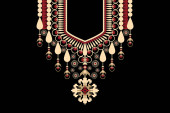 Piękny dekolt kwiatowy haft. geometryczny etniczny wzór tradycyjny na czarnym tle.Styl Aztec, abstrakcyjny wektor illustration.design dla tekstur, tkanin, kobiet mody noszenia, dekoracji, druku