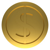 Złota ikona monety. Projektowanie pieniędzy. Złoty symbol płaski dolar. Ilustracja wektora