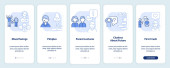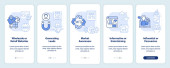 Zasada optymalizacji wyszukiwarki jasnoniebieski na pokładzie mobilny ekran aplikacji. Przejdź przez 5 kroków instrukcje edycji z pojęciami liniowymi. Interfejs, UX, szablon GUI. Myriad Pro-Bold, Czcionki regularne