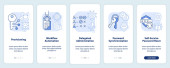 Zdjęcie "Zasada optymalizacji wyszukiwarki jasnoniebieski na pokładzie mobilny ekran aplikacji. Przejdź przez 5 kroków instrukcje edycji z pojęciami liniowymi. Interfejs, UX, szablon GUI. Myriad Pro-Bold, Czcionki regularne" może być wykorzystywane do celów osobistych i komercyjnych zgodnie z warunkami zakupionej licencji Royalty-free. Obraz jest dostępny do pobrania w jakości wysokiej rozdzielczości do 5760x3840.
