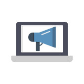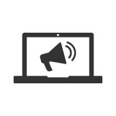 laptop z ikoną megafonu. płaska konstrukcja. ilustracja wektora marketingu
