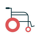 ikona wózka inwalidzkiego, ilustracja wektora